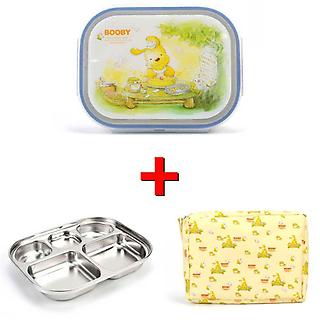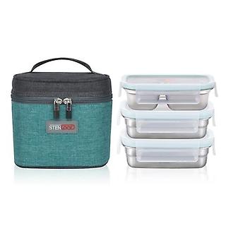 국산 스텐밀폐용기 스텐도시락 퓨어 사각 3단(소)