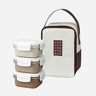 스텐 3단 5칸 찬합 도시락통 가방 세트 22.5cm 16호