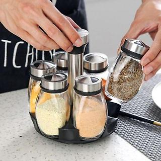 키친홈 회전트레이 양념통 6p세트 밀폐 유리양념병