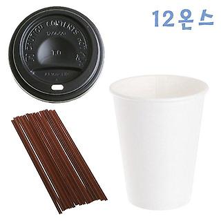 350ml 무지종이컵+검정컵뚜껑 100개+초코빨대 1000개