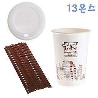 390ml 뉴욕종이컵+화이트뚜껑 100개+커피스틱 1000개