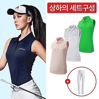 [상하의 셋업] 아디다스 SS 아디퓨어 민소매 폴로 여성 티셔츠 + 아디다스 SS 벤틸레이션 여성 골프 바지